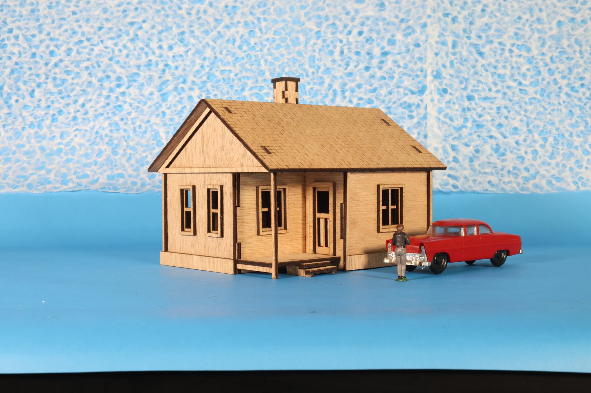 An O-Scale (1:48) Beach House laser cut out of wood. Seen on many beaches from the 1800s to today, these were a common house type in coastal towns and villages, but multiples of these would also be used to form large beach resorts in many locations. These would also make for excellent bunk houses for isolated mining or logging camps. A great companion to your 1:43rd, 1:48th, or 1:50th scale automobile collection. Also suitable for 1:48 dioramas, school projects, and presentations. Super Glue is highly recommended for assembly.